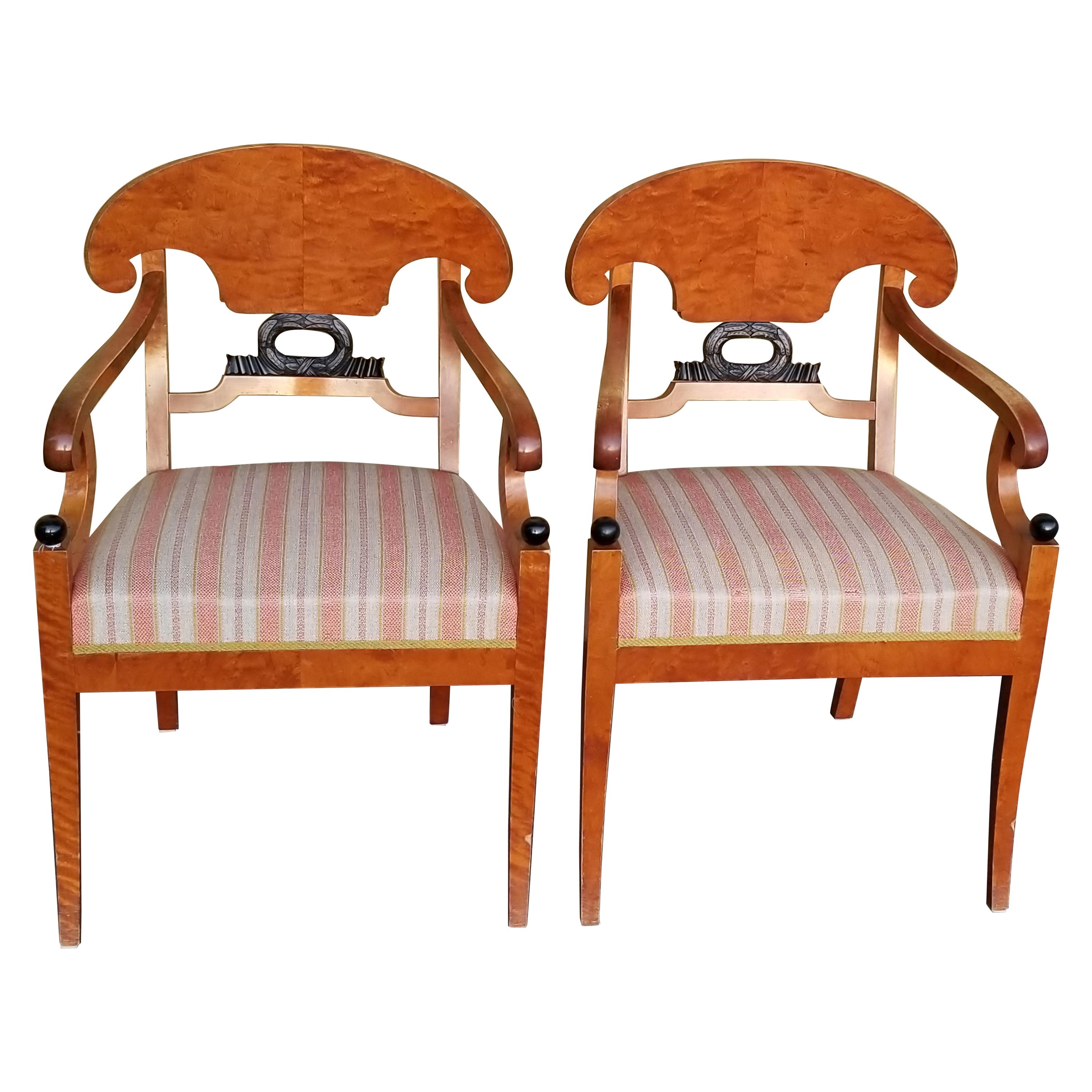 Biedermeier Swedish Carver Chairs 1800s Antique Quilted Golden Birch